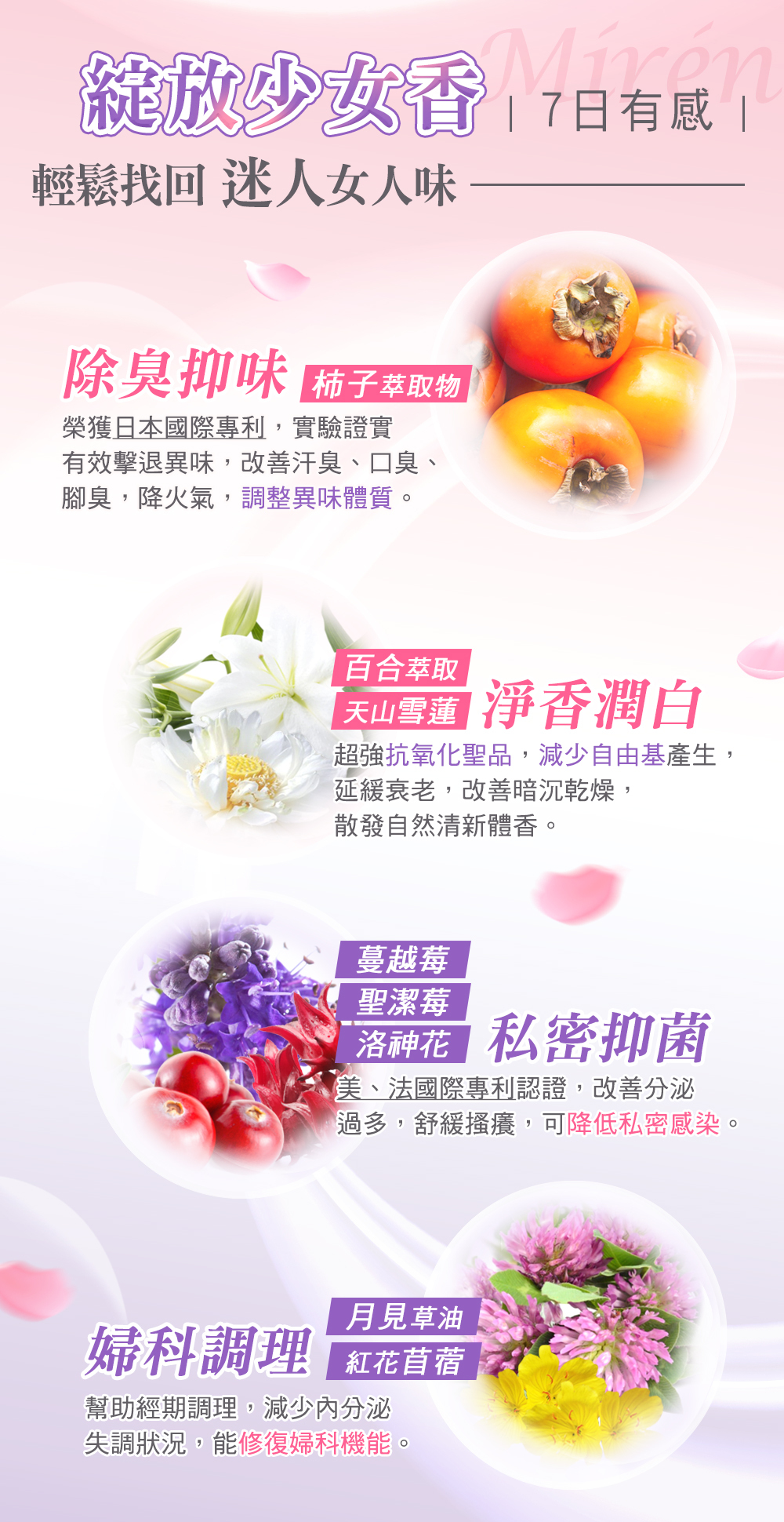 另外還添加私密呵護三寶:蔓越莓+聖潔莓+洛神花,