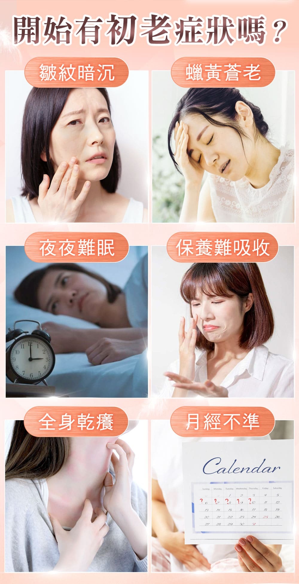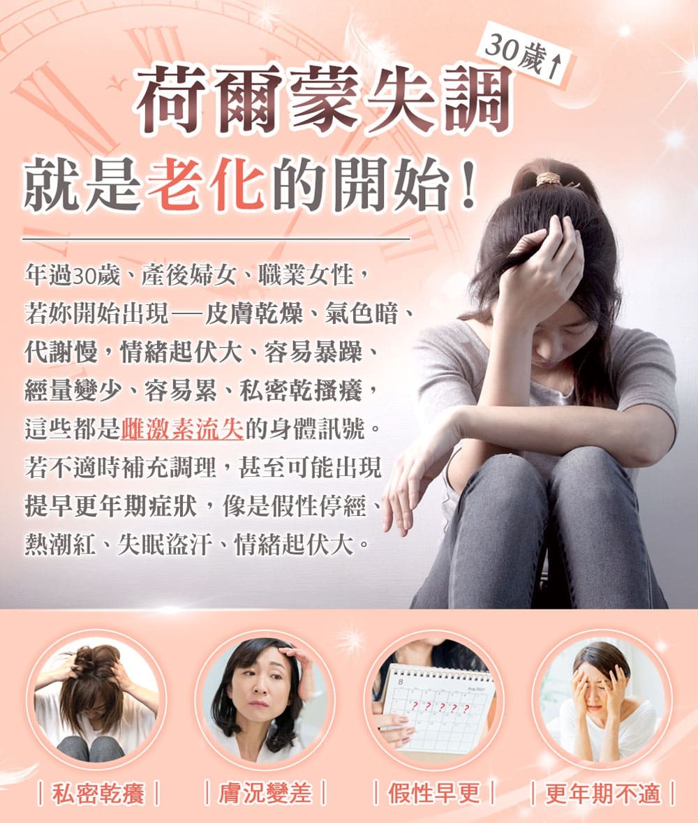 成份:琉璃苣油、洛神花萃取、大豆萃取物(含大豆異黃酮)、沙棘果油、迷迭香萃取物、迷迭香香精、卵磷脂油(乳化劑)、蜂王乳、脂肪酸甘油酯(乳化劑)、羊胎盤粉、鮭魚胎盤精華。